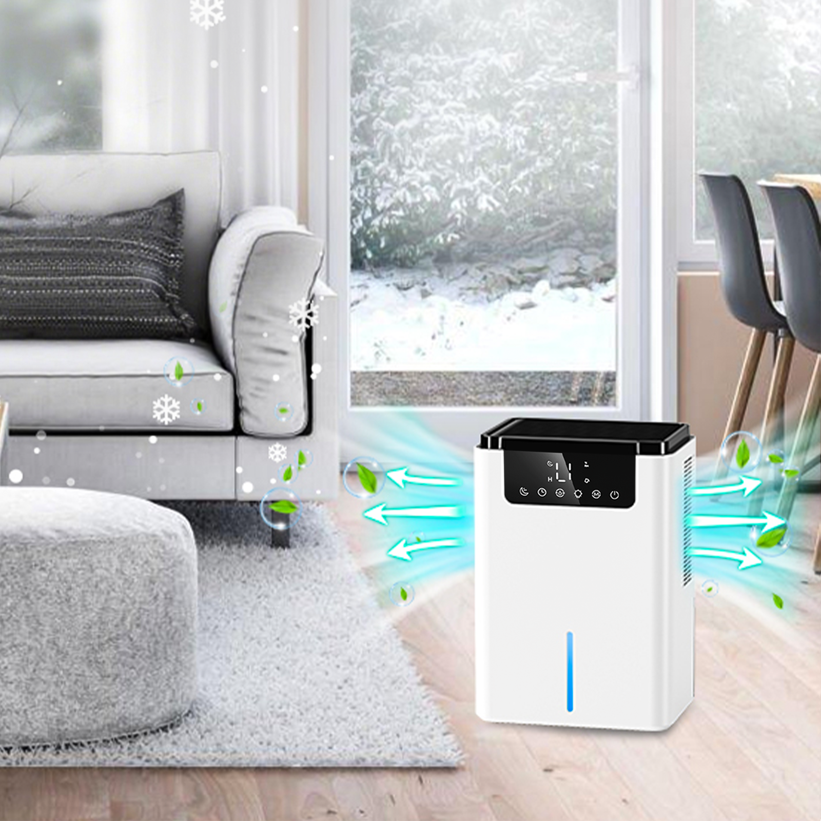 - Leistungsstarke Entfeuchtung: Die Dual-Core-Technologie beseitigt schnell stickige Luft für frischere Umgebung.